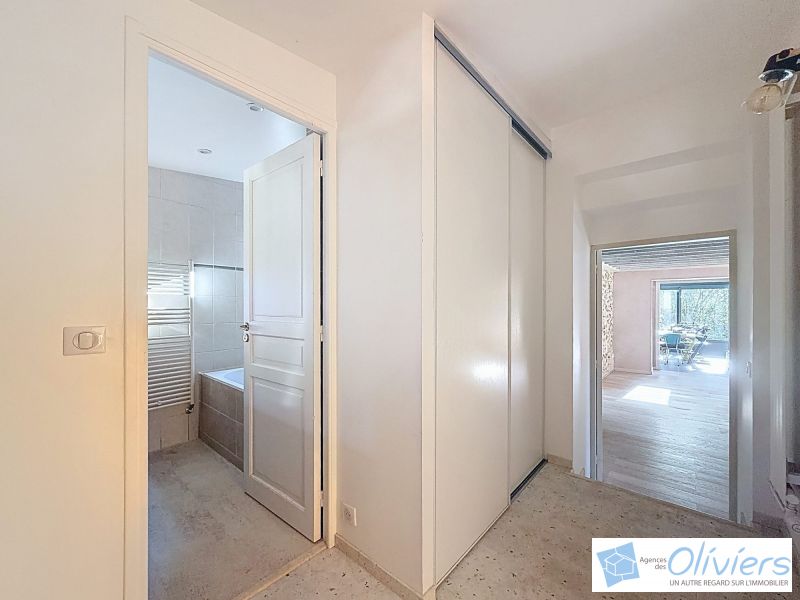 Elle se compose d’une entrée avec vestiaire, d’un séjour lumineux, ainsi que d’une véranda accueillant une cuisine américaine entièrement équipée avec espace salle à manger, d’une chambre, d’un bureau, d’une salle de bain et de toilettes indépendantes.