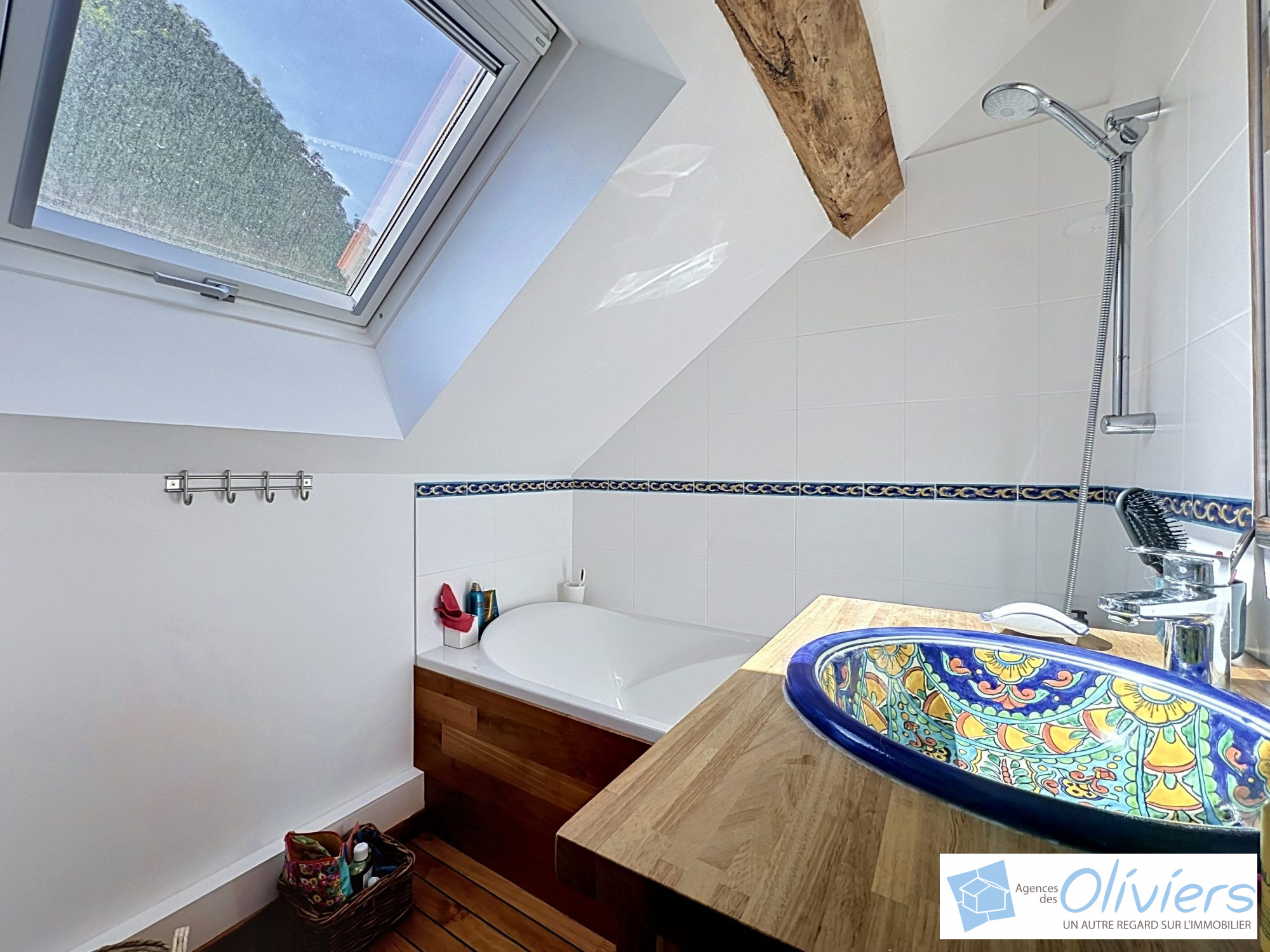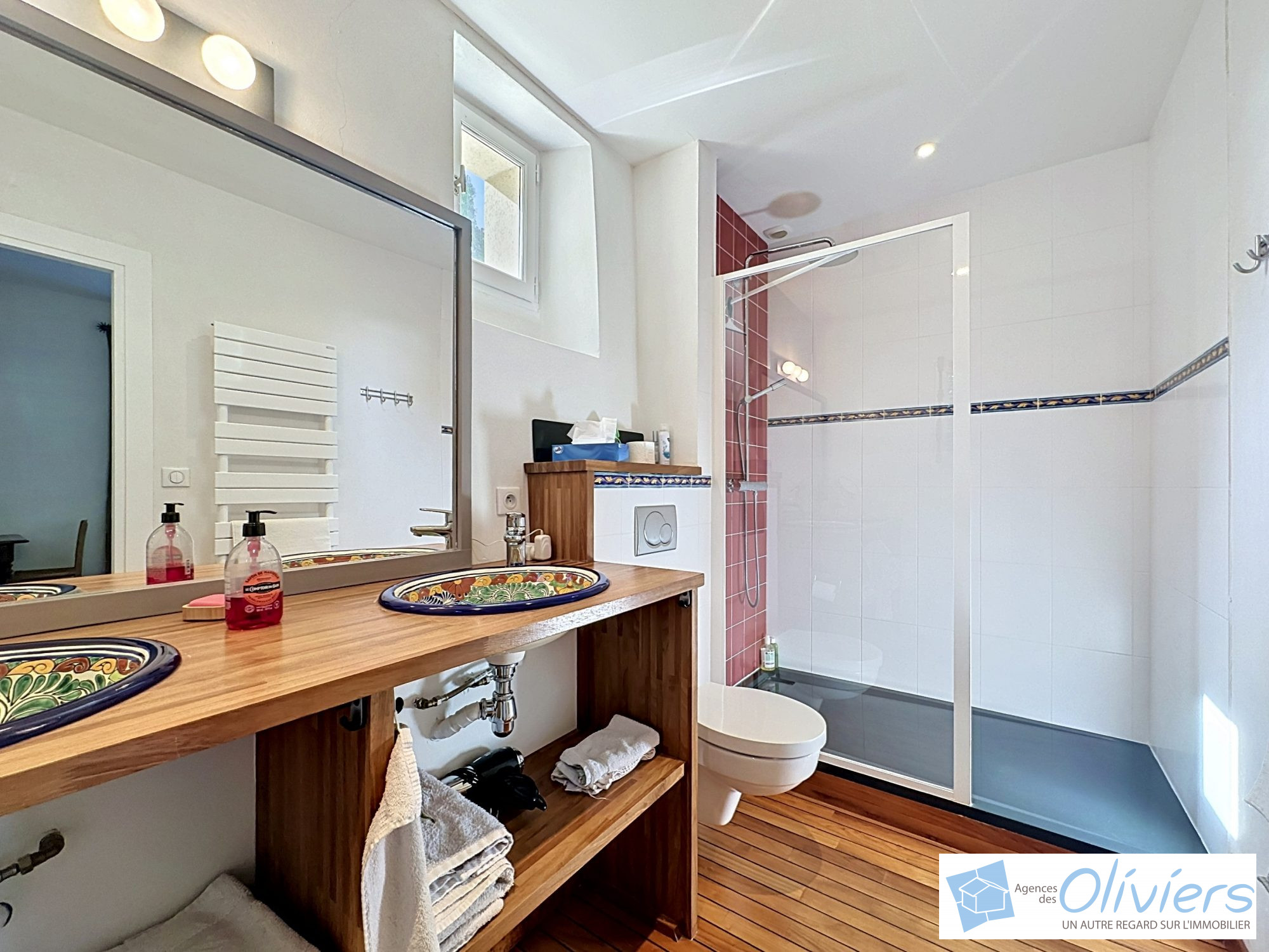 Une première chambre, idéale pour les invités dispose d’une belle salle de douche privative.