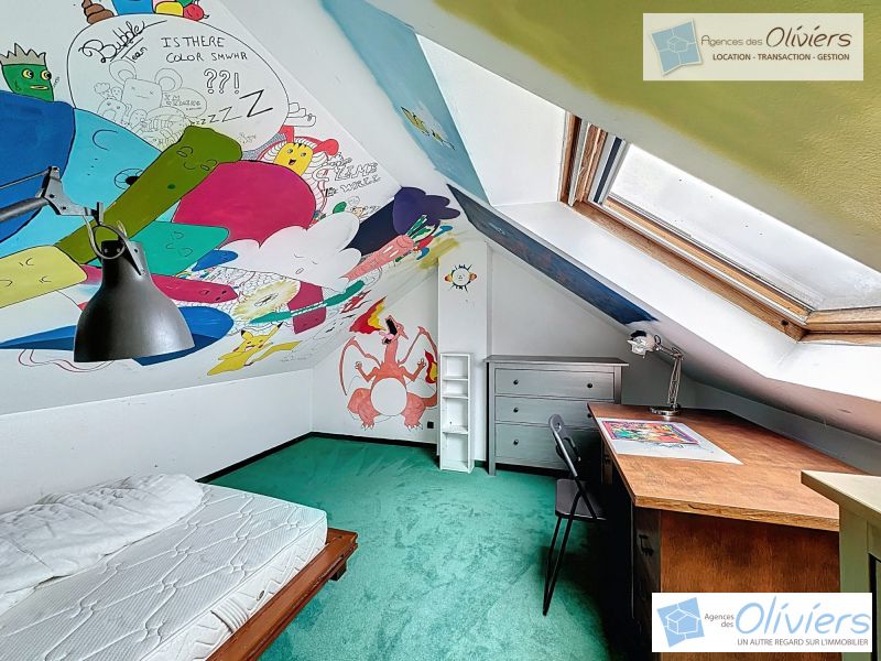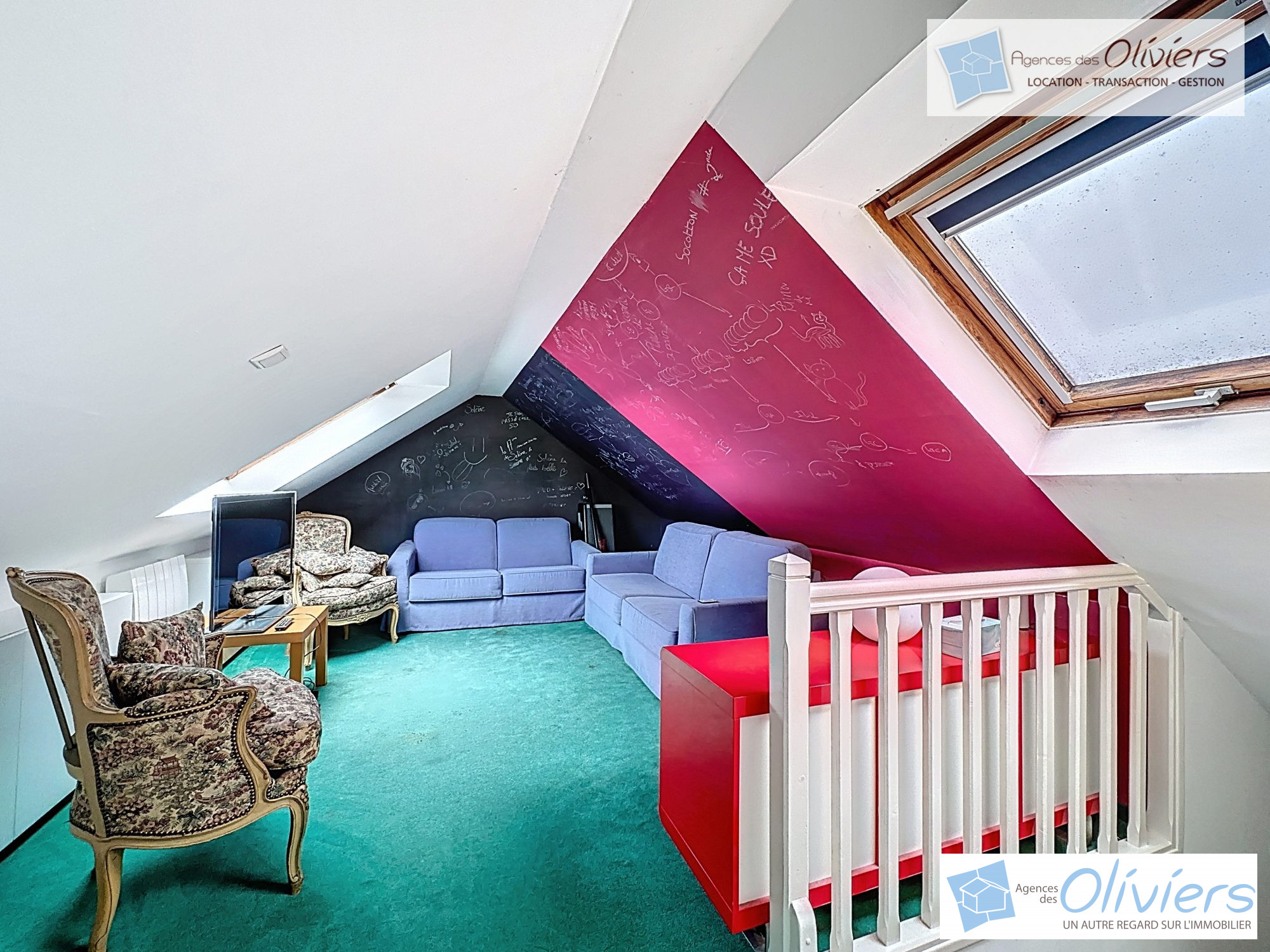 Les combles, aménagés comme un deuxième étage à part entière, intègrent une pièce de jeux / espace télé ainsi qu'une chambre supplémentaire.