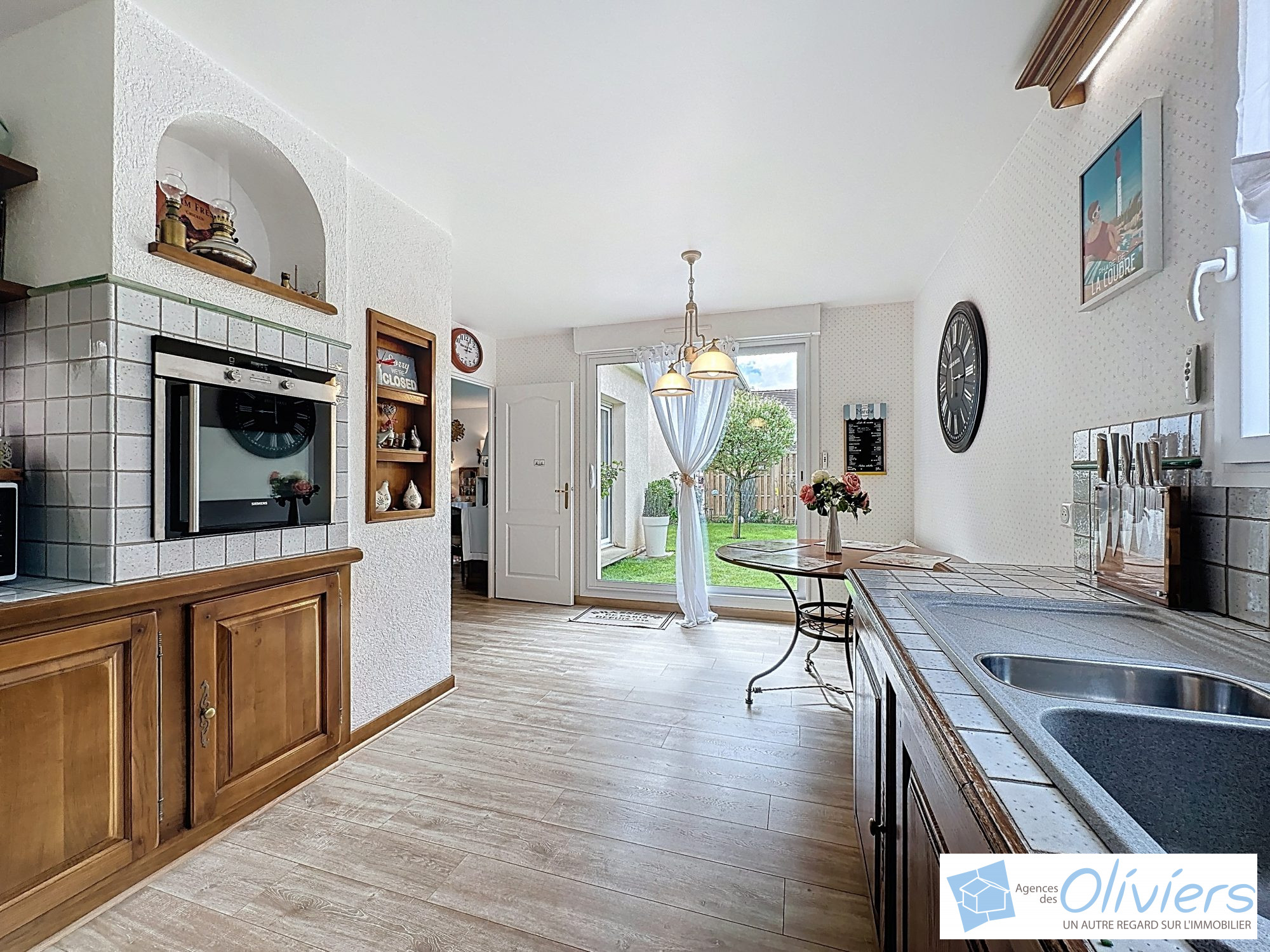 Elle se compose de 6 pièces, harmonieusement agencées. Au rez-de-chaussée, vous découvrirez une entrée accueillante avec placard penderie, un vaste séjour/salle à manger lumineux, ainsi qu’une grande cuisine indépendante et dinatoire, entièrement équipée. Un espace cellier/buanderie donnant accès au garage, ainsi qu’un toilette indépendant avec lave-mains complètent ce niveau.