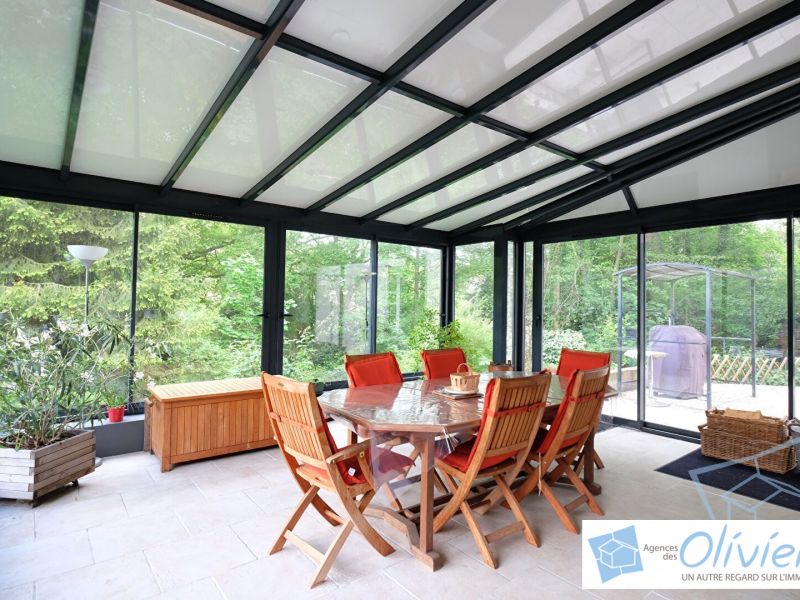 Entrée avec placard et toilettes séparées, belle pièce à vivre d'environ 48m² avec cheminée insert et un accès direct au jardin, la cuisine de 16m² est entièrement aménagée et équipée et est prolongée par une belle véranda.