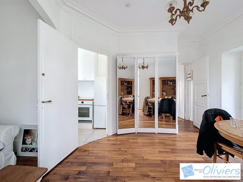 D’une surface habitable d’environ 39 m², il se compose d’un séjour lumineux ouvrant sur un balcon plein sud avec vue directe sur la rivière, d’une cuisine indépendante rénovée, d’une chambre, et d’une salle de bains avec WC entièrement refaite, habillée de pierre de travertin. La hauteur sous plafond de plus de 2,80 m et les moulures d’époque soulignent le charme et l’authenticité des lieux.