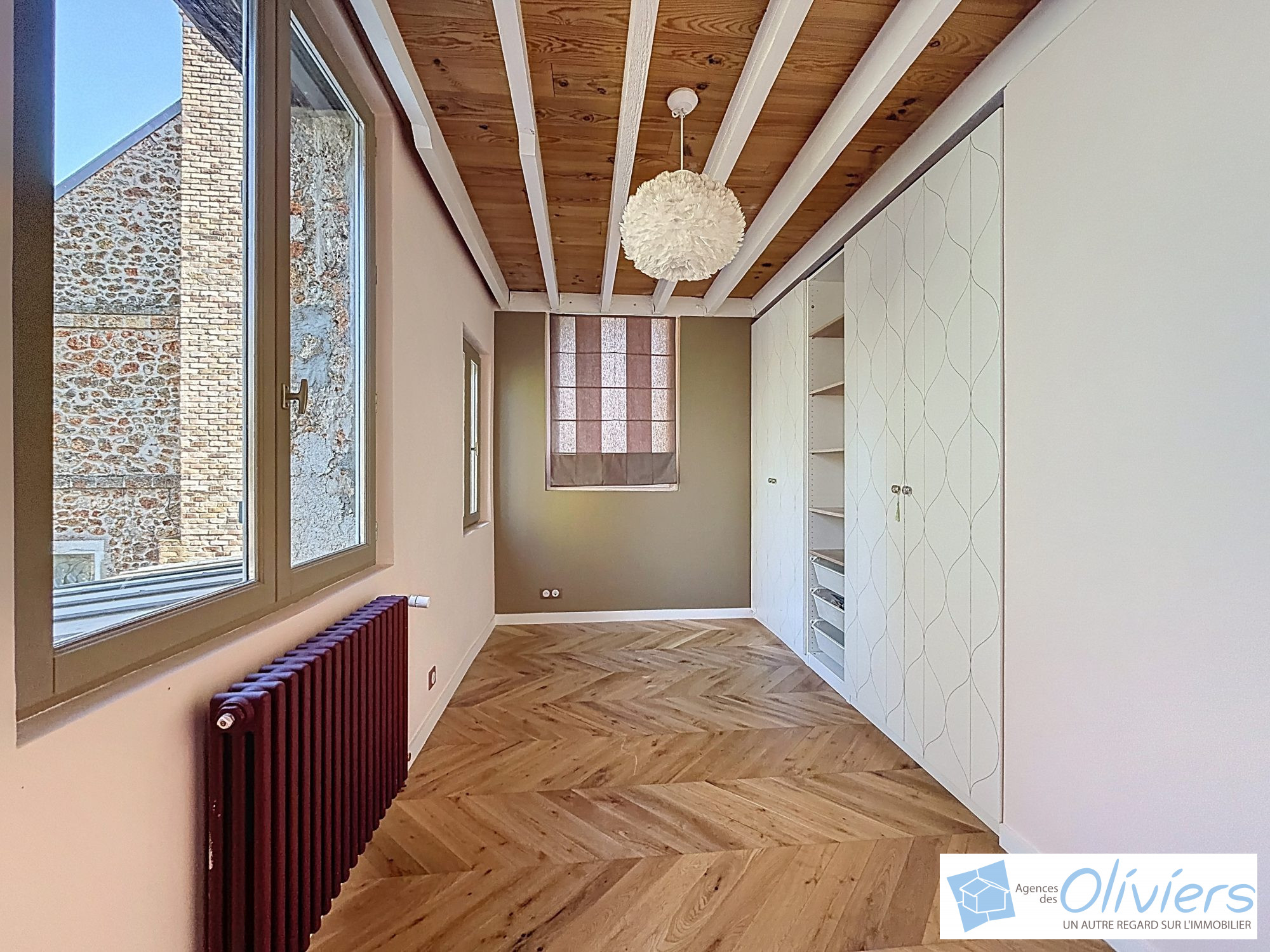 À l’étage, un palier dessert deux belles chambres avec dressing ainsi que des combles.