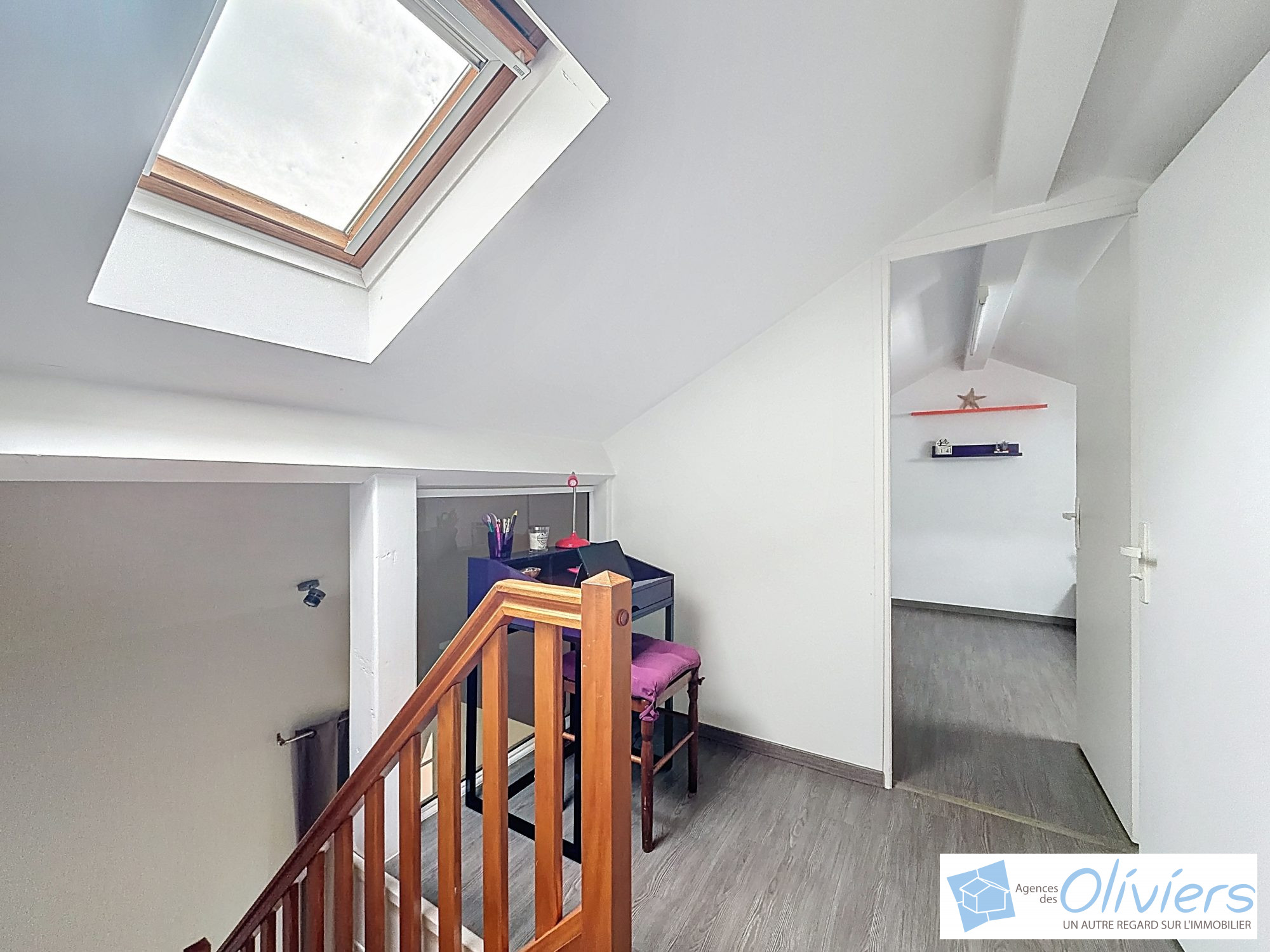 À l’étage, deux chambres mansardées ainsi que des toilettes viennent compléter l’ensemble.