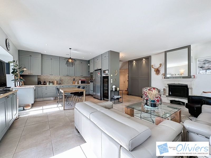 Vous serez séduit dès l’entrée par un magnifique espace de vie, spacieux et lumineux, comprenant un séjour / salle à manger avec cheminée à insert, ouverts sur une cuisine américaine moderne et entièrement équipée.