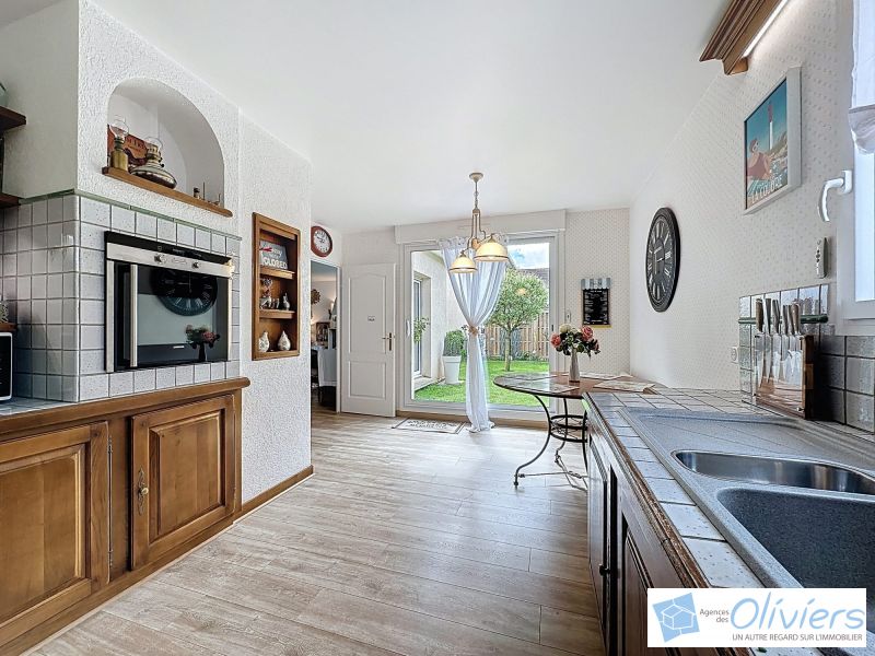 À l’extérieur, le jardin est clos et exposé Ouest, offrant un cadre agréable et ensoleillé, idéal pour profiter des beaux jours en famille.